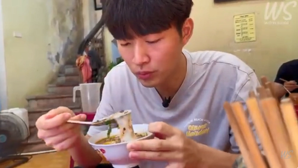 "Bánh đúc mềm mướt hòa quyện cùng vị béo ngậy từ thịt băm được xào thơm nức mũi, được dung hòa với phần nước dùng ninh từ xương và mắm chua ngọt tạo ra món ngon rất đáng thử", Woo Sung nhận xét.