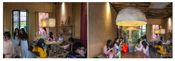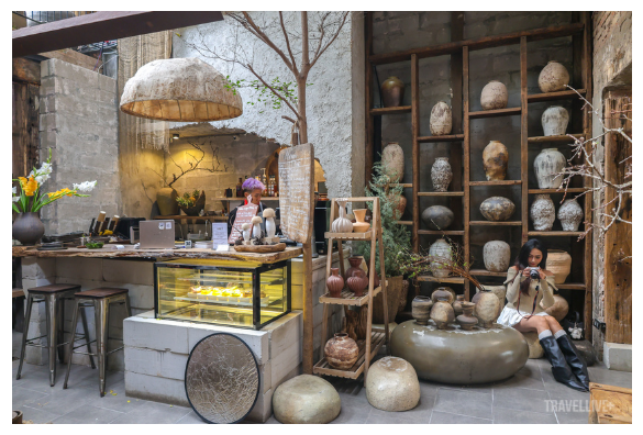 Quản lý của MAY, chị Hương, cho biết: “Nhiều đồ trang trí ở đây được đặt từ nước ngoài về để tạo sự đa dạng cho không gian. Ngoài ra, để tô điểm thêm cho không gian văn hoá và sự truyền thống, các món đồ trang trí Tết như bình hoa, mành tre hay chiếu cói đều được đặt từ nhiều nguồn khác nhau, bao gồm cả làng nghề truyền thống ở Việt Nam như của người Chăm hay Thái”. Chính sự đầu tư kỹ lưỡng và tâm huyết trong từng chi tiết đã khiến quán không chỉ là nơi thưởng thức cà phê mà còn là địa điểm check-in hấp dẫn.