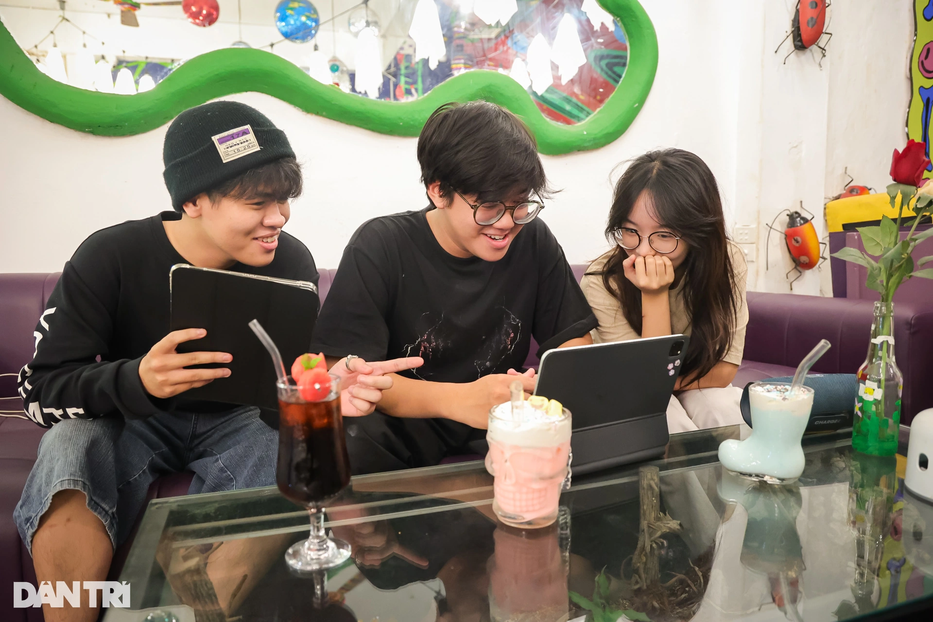 Nhiều bạn trẻ cũng tìm đến check-in tại các góc nghệ thuật của quán.