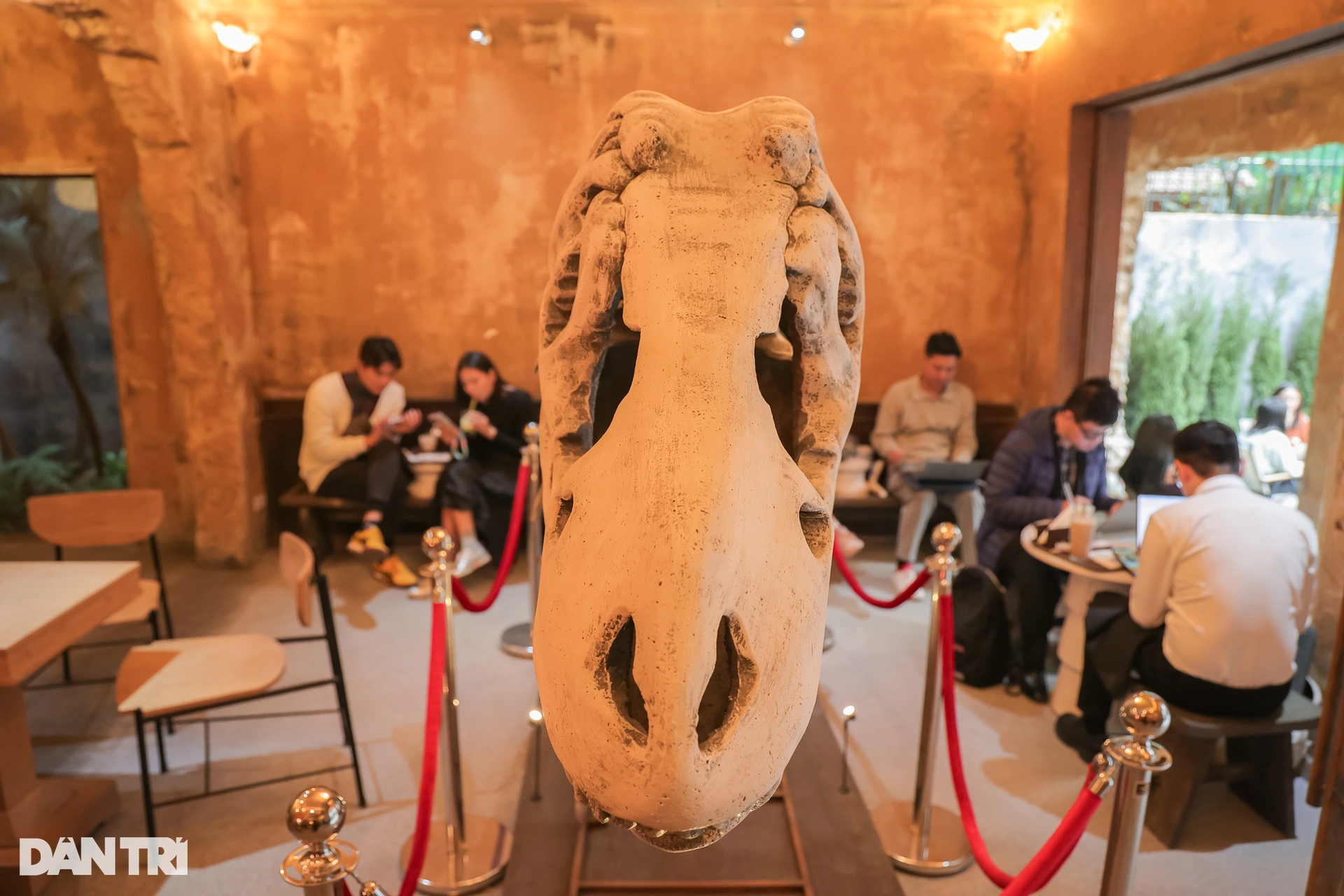 Mô hình hóa thạch khủng long tại đây được nhiều người đánh giá là độc đáo, có một không hai. Không chỉ đến uống cà phê, nhiều khách hàng đến đây với mục đích chụp ảnh.