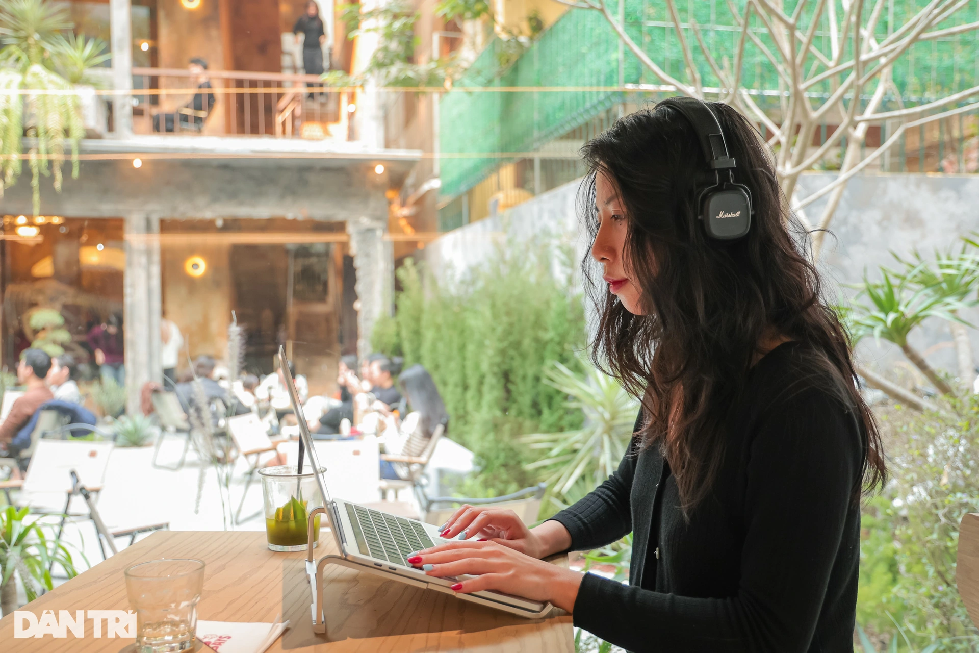 Minh Thu (29 tuổi, Hà Nội) chọn ngồi không gian trong phòng kính của quán để làm việc, vừa thưởng thức cốc matcha trà xanh thơm ngon. "Tôi thấy không gian khá lạ mắt và ấn tượng. Tuy nhiên, lượng khách đông khá ồn ào, nên tôi hơi khó tập trung vào công việc", Minh Thu bày tỏ.