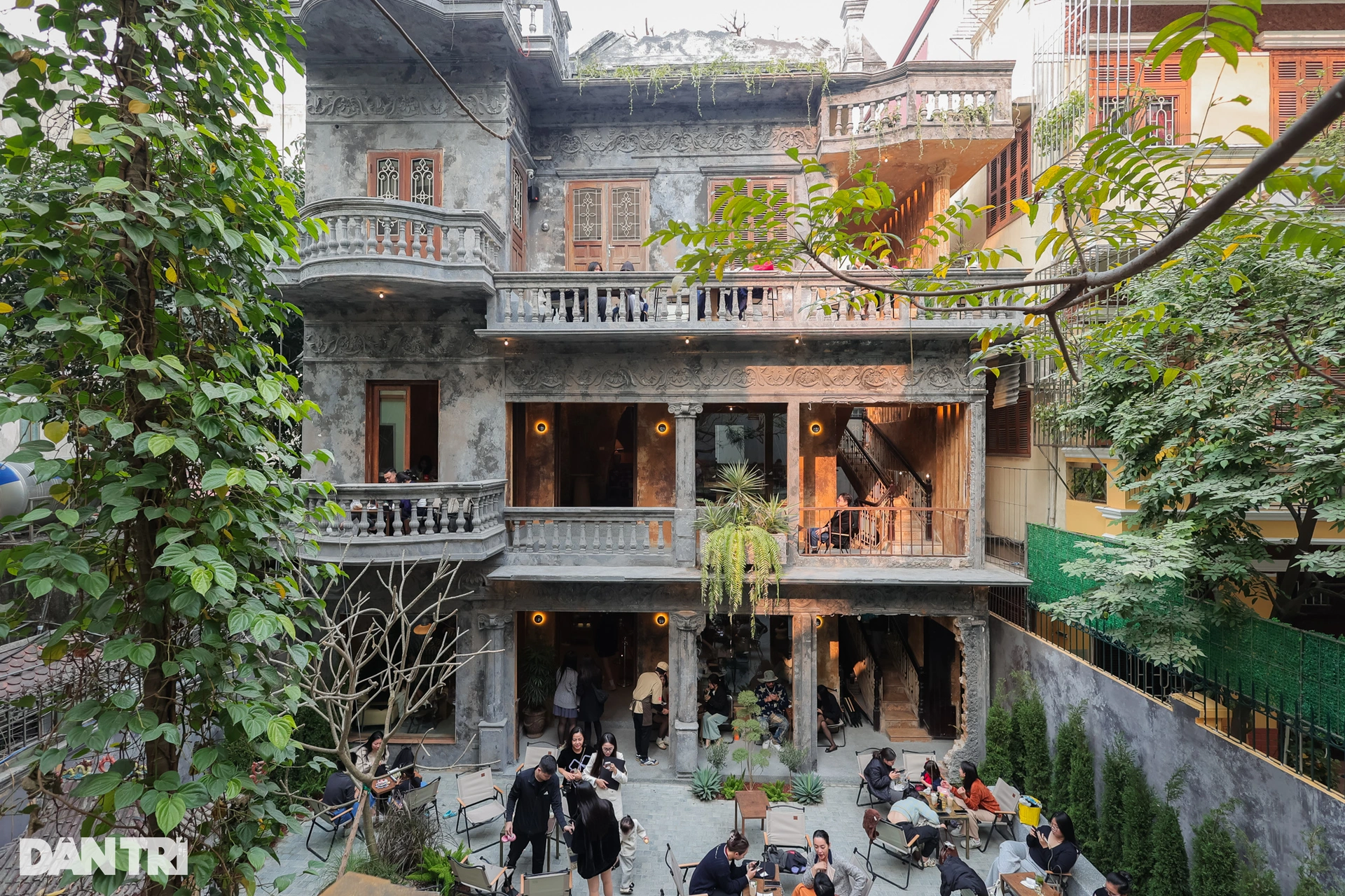 Quán nổi bật với nhiều khu vực ngoài trời và tầng thượng được thiết kế thú vị, nhìn từ xa tựa như một "chiếc lầu cổ" với mái ngói Việt Nam. Từ màu sơn, kiến trúc đến ánh đèn vàng đều mang đậm dấu ấn nghệ thuật, tạo nên không gian độc đáo và phong cách riêng biệt.