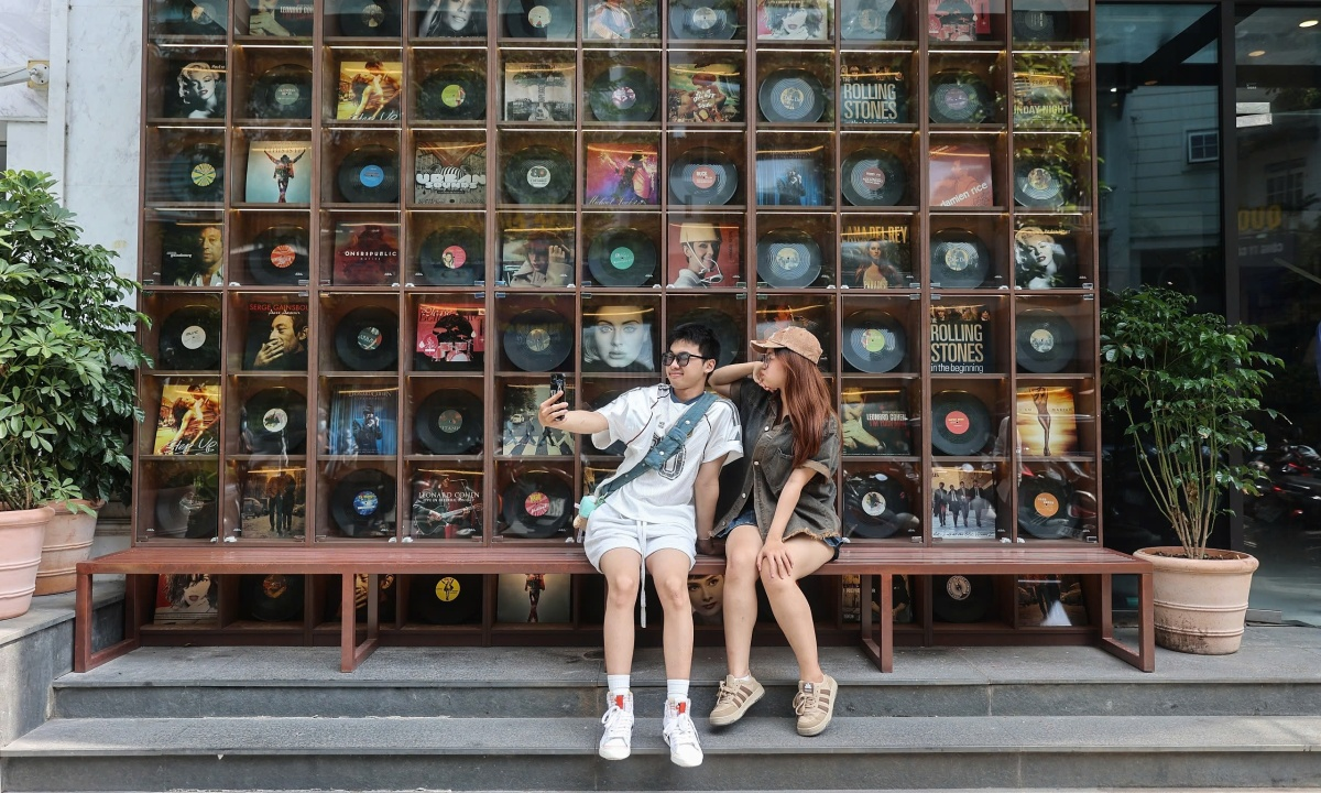 Quán cà phê mới mở ở quận 10 trang trí đĩa than theo phong cách cổ điển, thu hút nhiều bạn trẻ đến chụp hình.