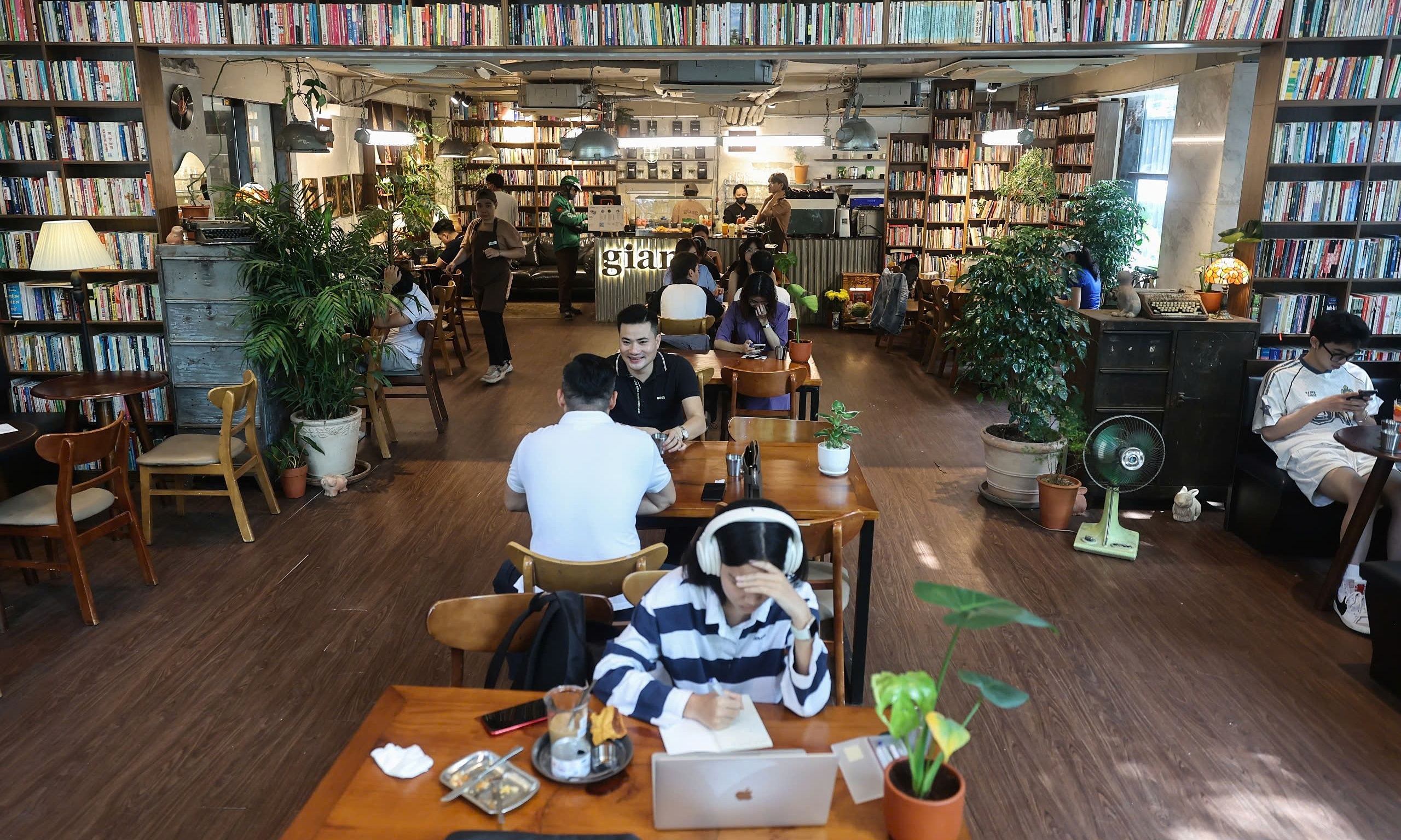 Không gian của quán chia thành các khu vực để trò chuyện, làm việc nhóm, học bài và ngồi ngoài trời.
