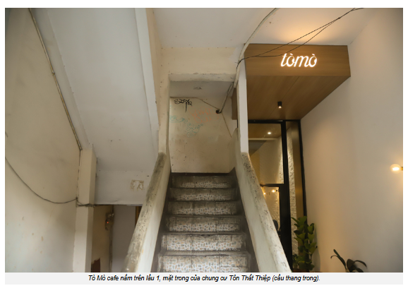 Vì trót lỡ mê đắm nơi này, travel blogger Lý Thành Cơ đã xây dựng quán Tò Mò Cafe tại lầu 1, cầu thang trong của khu chung cư Tôn Thất Thiệp. Chung cư có hai mặt, nên người dân gọi "cầu thang ngoài" và "cầu thang trong" để dễ phân biệt. Tìm Tò Mò cafe không khó. Bạn đến cổng chính số 42 Tôn Thất Thiệp, bỏ qua cầu thang ngoài, đi thẳng qua không gian gửi xe. Từ đây, bạn đi lên lầu 1 cầu thang phía bên trong, quán nằm ngay phía bên tay trái.