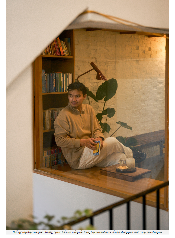 Bước lên trên, ánh sáng tràn ngập cả không gian, tiếng chim hót líu lo rộn ràng trong không gian nhiều cây xanh, khác hẳn so với sự xô bồ cách đó chỉ mấy bước chân. Chỉ cần bước vào trong chung cư đã thấy được không khí khác biệt so với bên ngoài. Hình ảnh những cô chú lớn tuổi trầm ngâm lặng lẽ giữa sự năng động tươi vui của các bạn trẻ tới đây mua sắm hay uống cà phê tạo nên sự giao thoa đầy thú vị. "Tò Mò cafe muốn trở thành một phần trong đó", nam travel blogger tâm sự.