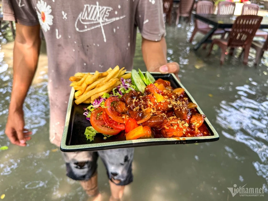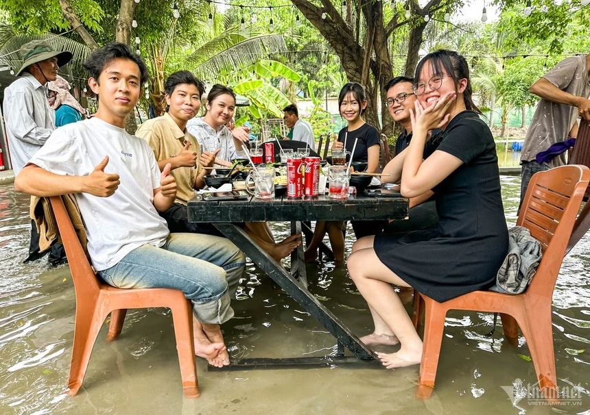 Những ngày qua, trên mạng xã hội xuất hiện loạt video về một quán ăn ngập nước tại TP.HCM. Theo đó, thực khách ngồi thưởng thức đồ ăn giữa cảnh nước nổi lênh láng, nhân viên bì bõm lội nước để phục vụ.