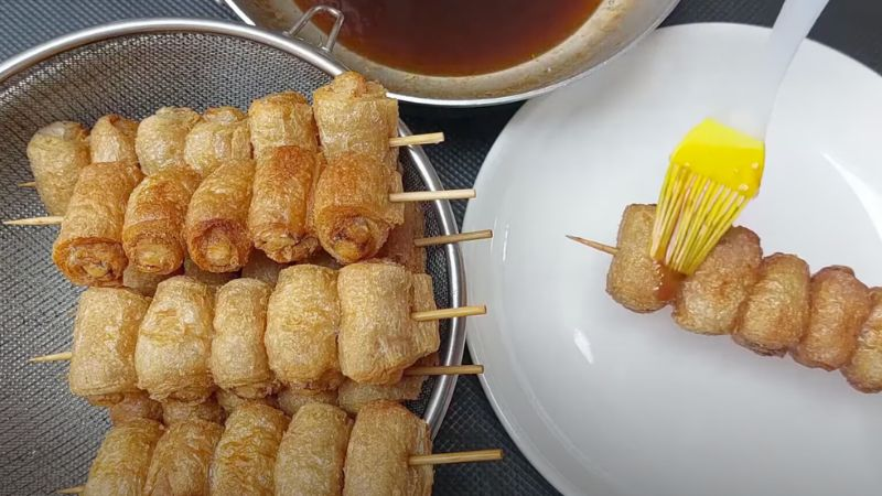 Cuối cùng, bạn hãy dùng cọ để quét nước sốt lên trên những xiên que là đã hoàn thành và có thể thưởng thức rồi đấy.