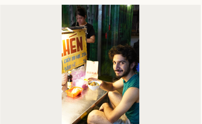 John, 27 tuổi, đến từ Pháp cho biết anh đã thưởng thức bánh mì kẹp ngay từ hôm đầu tiên đến TP HCM và trong suốt một tuần ở đây, anh cố gắng thưởng thức những loại bánh mì khác. John tỏ ra thích thú khi thử ăn bánh mì xíu mại chan. "Nước soup làm cho bánh mì mềm và đỡ khô hơn bánh mì kẹp chả tôi đã ăn trước đó", John nói.